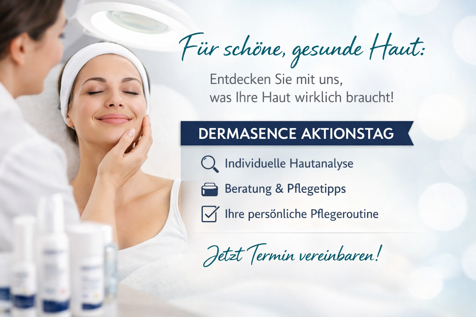 Am DERMASENCE Aktionstag steht Ihre Haut im Mittelpunkt. Unsere geschulten Kosmetikfachberater:innen nehmen sich Zeit für eine individuelle Hautanalyse, empfehlen Ihnen passende Pflegeprodukte und stellen eine Pflegeroutine zusammen, die genau auf die Bedürfnisse Ihrer Haut abgestimmt ist..